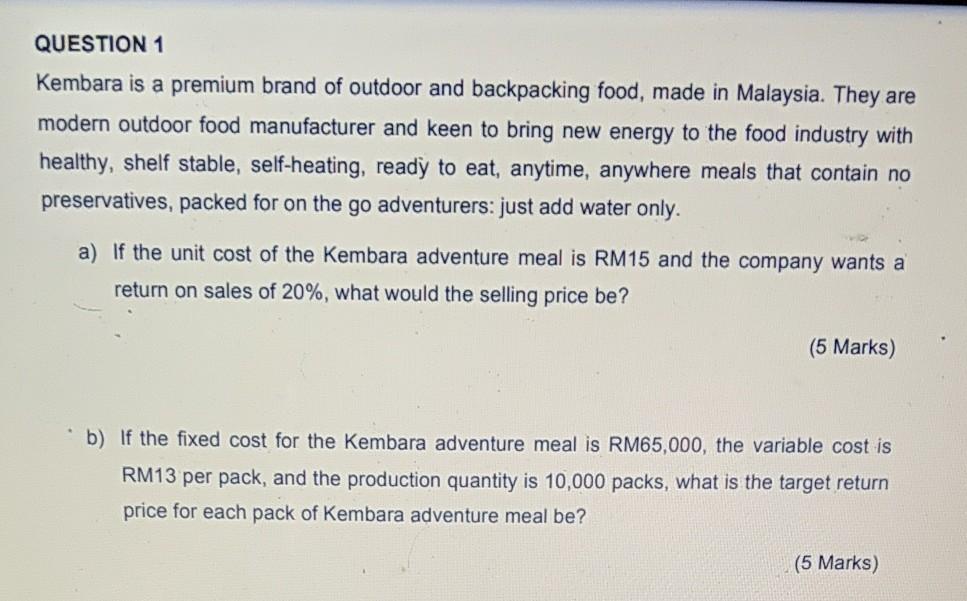 Solved QUESTION 1 Kembara is a premium brand of outdoor and